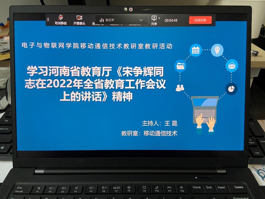 k1体育移动通信技术教研室教师线下认真研读并领会“宋争辉同志在2022年全省教育工作会议上的讲话”文件精神。2022年1月28日,以钉钉在线会议的形式组织教研室全体教师开展集中学习。