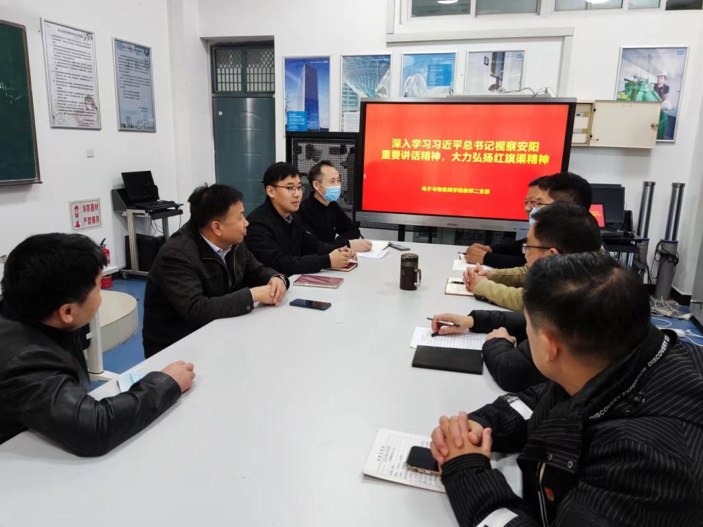 11月24日下午,k1体育教师二支部在机电楼406召开以“深入学习习近平总书记视察安阳重要讲话精神,大力弘扬红旗渠精神”为主题的专题组织生活会,深入学习贯彻党的二十大和习近平总书记视察河南安阳重要讲话精神。支部全体党员参加会议,会议由支部书记李飞高主持。