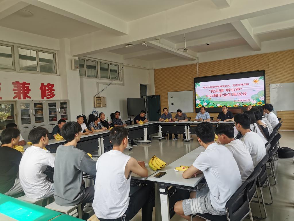 为进一步深入贯彻全国职业教育大会精神和《中共k1体育委员会关于开展基层党支部“1+1”互融共建活动的通知》,6月15日下午,k1体育与党政办党支部在机电楼405联合组织开展“党共建 听心声”2023届毕业生座谈会。公司党总支书记王东辉、副书记孙德胜,党政办副主任曾凤括、张宇,教师代表及23届毕业生代表参加座谈会,会议由副书记孙德胜主持。