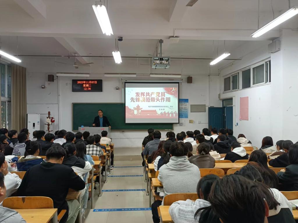 11月7日中午,电子与物联网公司党总支书记王东辉在明理楼1102教室为k1体育2023年第二期入党积极分子做以《发挥共产党员先锋模范带头作用》为主题的党课专题讲座。
