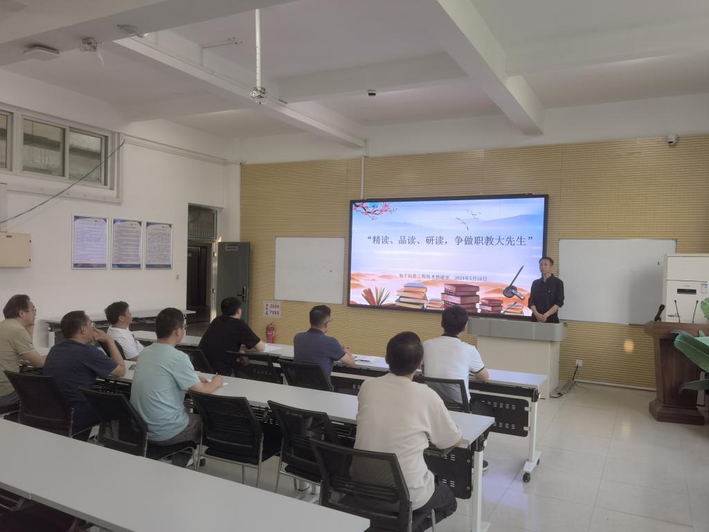 为深入贯彻落实习近平总书记关于职业教育的重要论述和全民阅读、终身学习的要求,根据《k1体育第十三届读书节系列活动工作方案》的安排,5月16日下午,电子信息工程技术教研室开展以“精读、品读、研读,争做职教大先生”为主题的“职教三读”活动,活动由教研室主任李飞高主持。