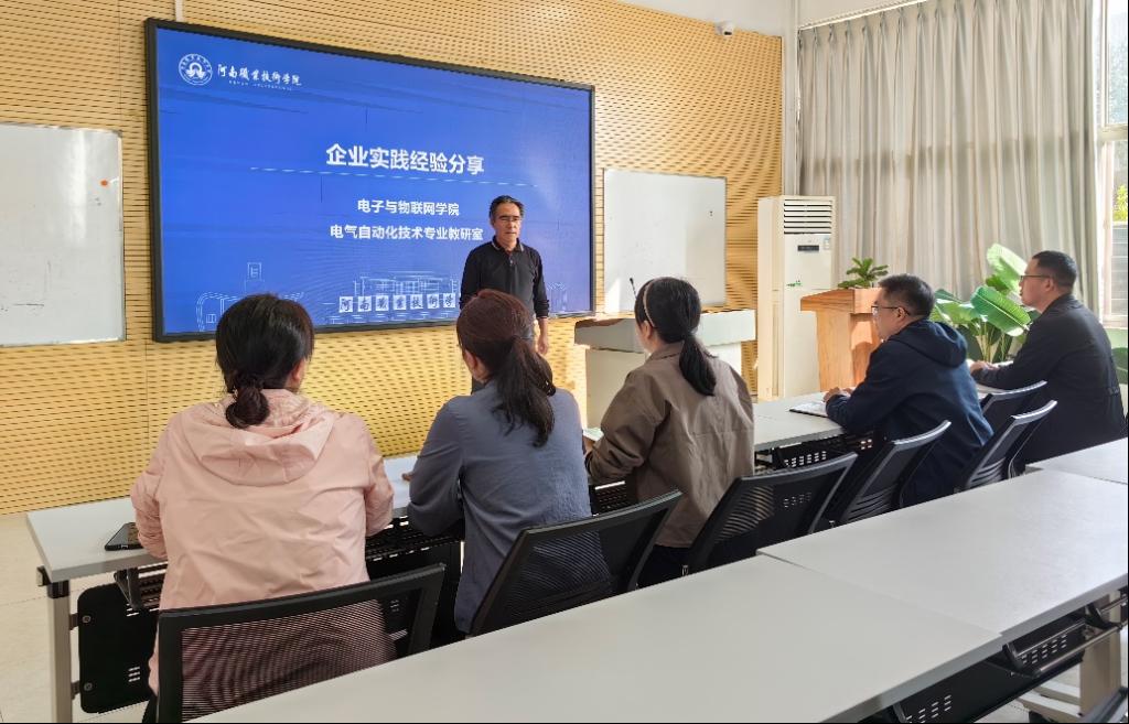 会上,多位专、兼职教师轮流分享了在华润电力、通力电梯和郑州凯鹏实验仪器等企业的经验与见解。他们通过案例深入剖析了自动化技术、电力系统及工业网络技术在现代工业的应用,并阐述了理论知识向员工实操能力的转化方法。自动化技术方面,教师们强调其在提高生产效率、优化工艺流程及智能化控制方面的成效。此外,还讲解了工业网络技术的重要性,指出其是实现数据共享和远程监控的关键。