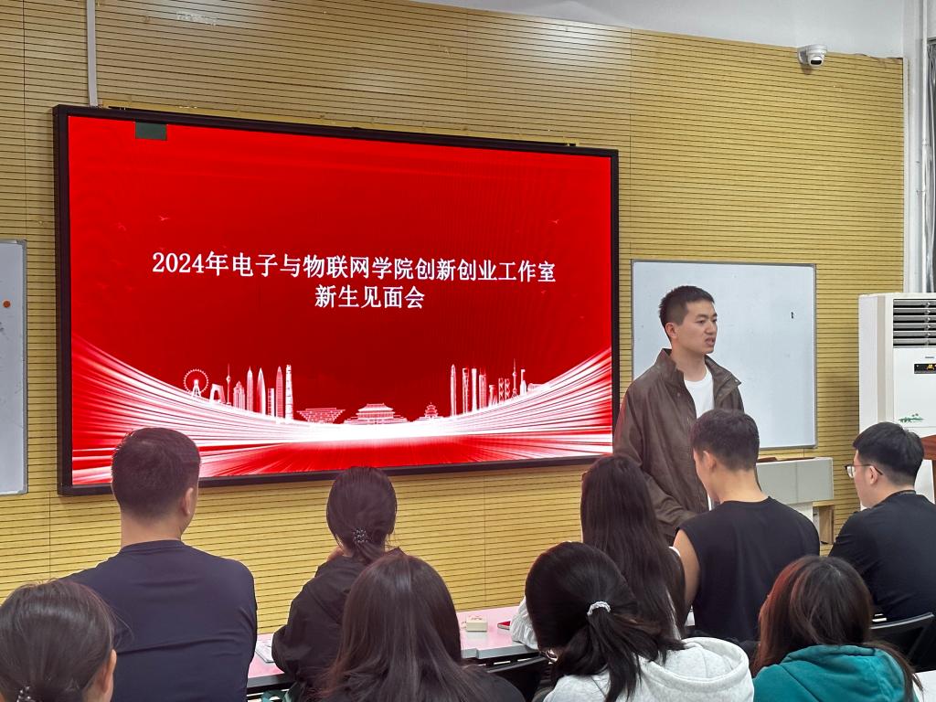 在见面会上,创新创业工作室主任杨佳豪向新成员们详细介绍了工作室的宗旨、愿景及往届成果。他鼓励新成员积极参与创新项目,充分利用这一平台,勇于探索,为工作室的发展贡献力量。