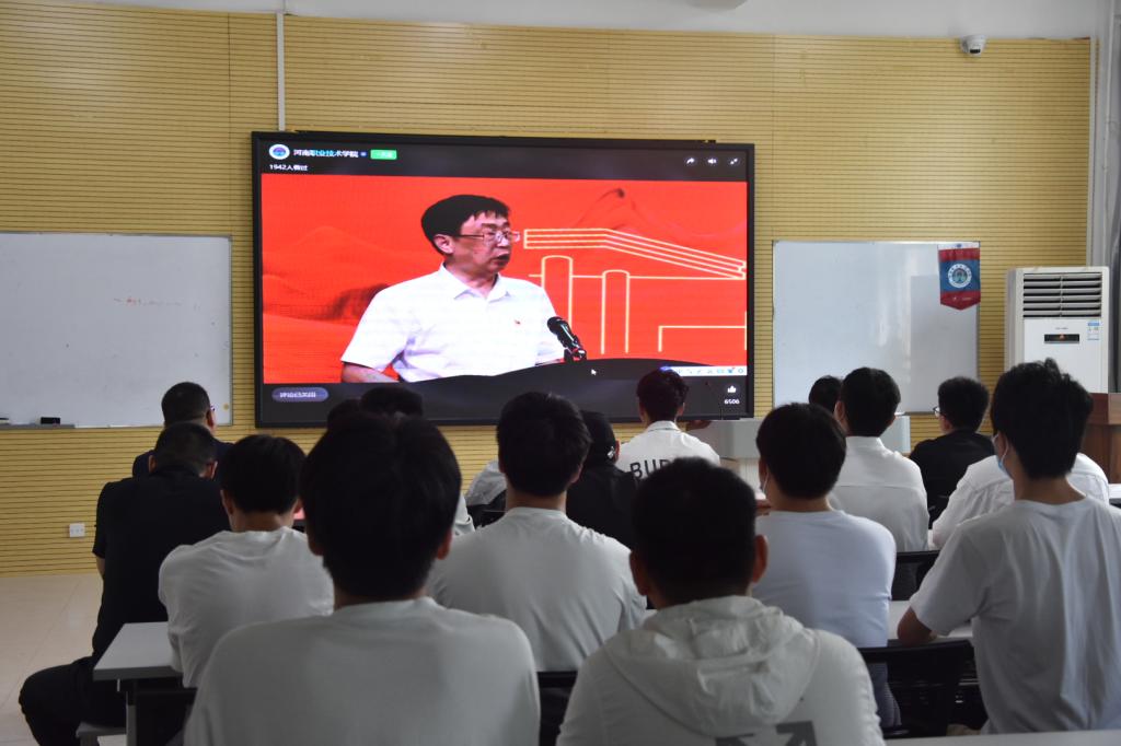 随后,董事长梅乐堂以《蓄力青春静待花开》为题,为新生讲授“开学第一课”。他希望全体新同学要不忘初心,擦亮青春底色,做一个有“高度”的人;要不负时代,增添青春亮色,做一个有“厚度”的人;要不惧将来,淬炼青春成色,做一个有“温度”的人。同时,他还勉励同学们要与家国同向,与河职同行,以无畏的姿态奔腾,在追寻梦想的征途中,乘风破浪,逆流而上,续写河职新故事,开启河职新篇章。