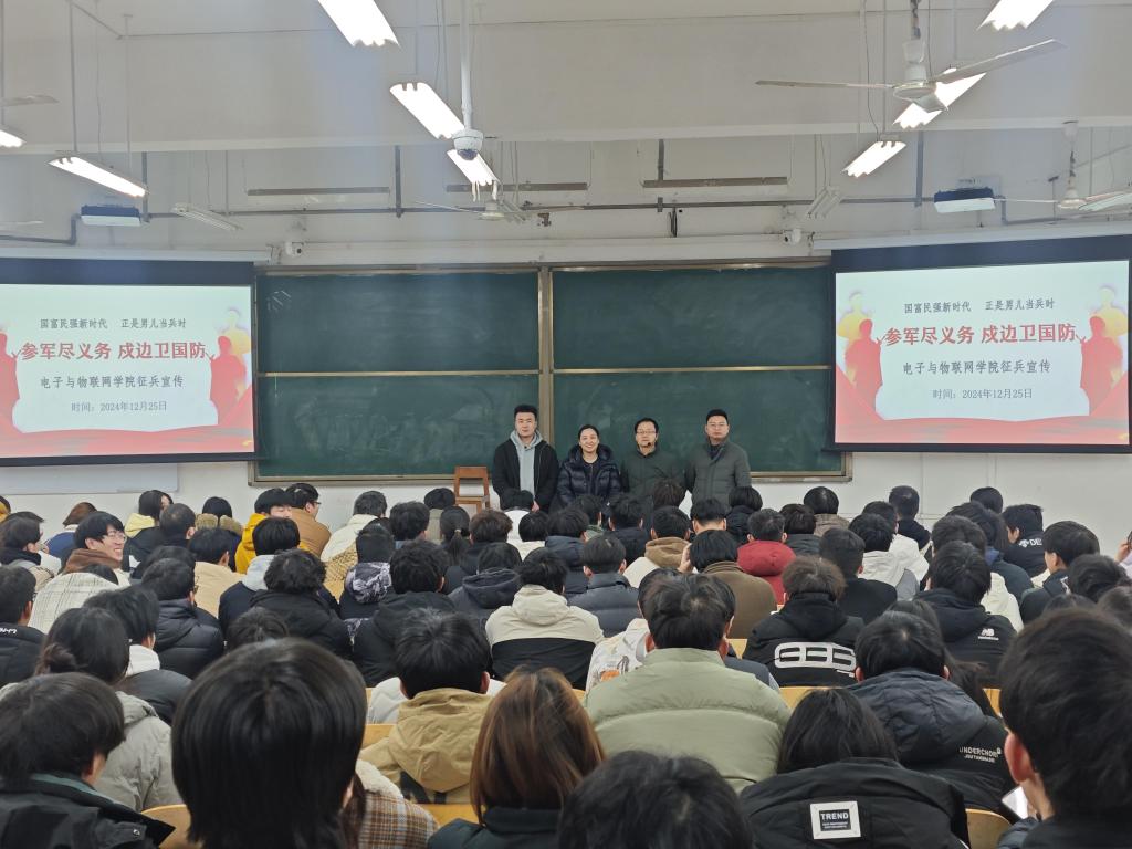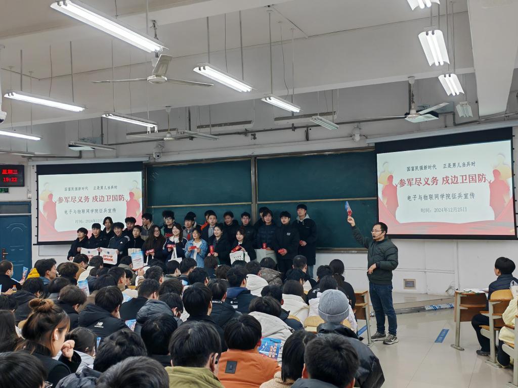 为响应党和国家号召,扎实推进公司2025年老员工征兵工作,激发老员工参军热情,12月25日晚,公司在明理楼1101教室举办了“参军尽义务,戍边卫国防”征兵宣传讲座。校学工部武装部办公室主任刘明库应邀作为讲座的主讲人、郑州爱尔眼科医院王静医生应邀作为嘉宾参加此次讲座活动。讲座由公司辅导员王蕊老师主持,辅导员王率帅老师和刘云杰老师参加。