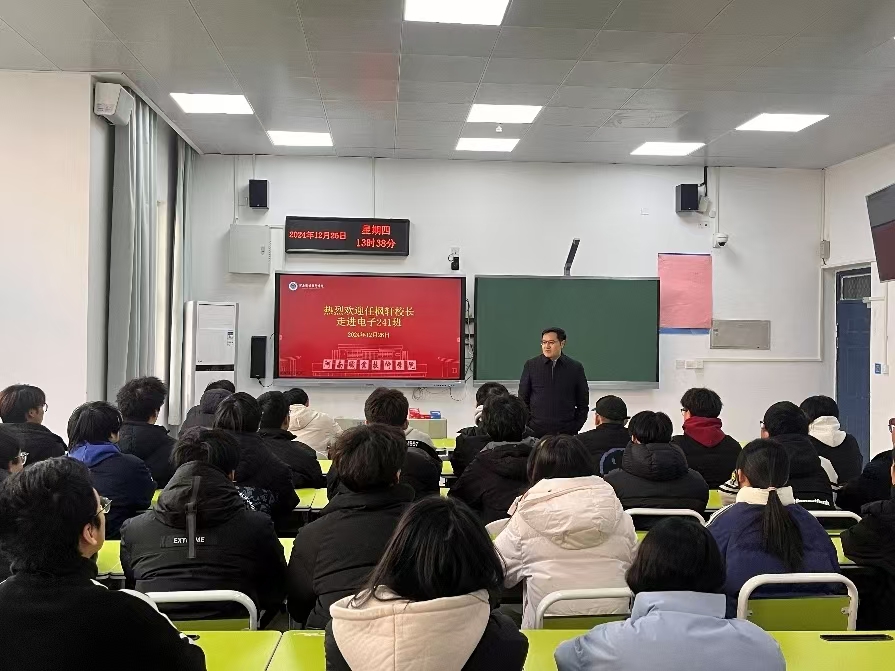 讲座伊始,任枫轩首先为同学们介绍了电子信息工程技术专业的发展脉络及应用场景,并为同学们讲解了公司该专业已取得的优秀成绩。接着,他以近期的热点国际事件为例,分析了热点事件背后的政治、经济、军事等因素。随后,他结合自身经历向同学们讲述了中外不同国家在政治、经济、医疗、科技等方面的差异,并强调在党的带领下,我国在各个领域取得的世界领先成就。最后,任枫轩勉励同学们,要“持续充电”,不断学习,珍惜时光,提升专业知识和综合素养,努力成长为堪当民族复兴大任的时代新人。