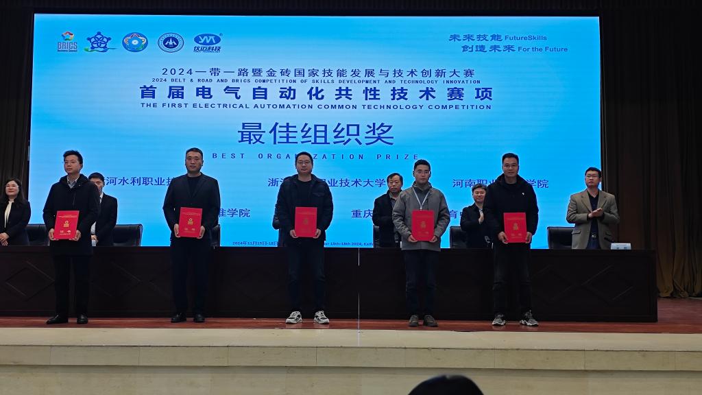 2024“一带一路”暨金砖国家技能发展与技术创新大赛首届电气自动化共性技术赛项,11月18日在黄河水利职业技术公司落下帷幕,k1体育樊沾芳、吴顺普两位同学参赛,在比赛中充分展示个人实力,以扎实的基本功,过硬的心理素质,出色的临场发挥,荣获员工组一等奖、三等奖,为公司摘得最佳组织奖。